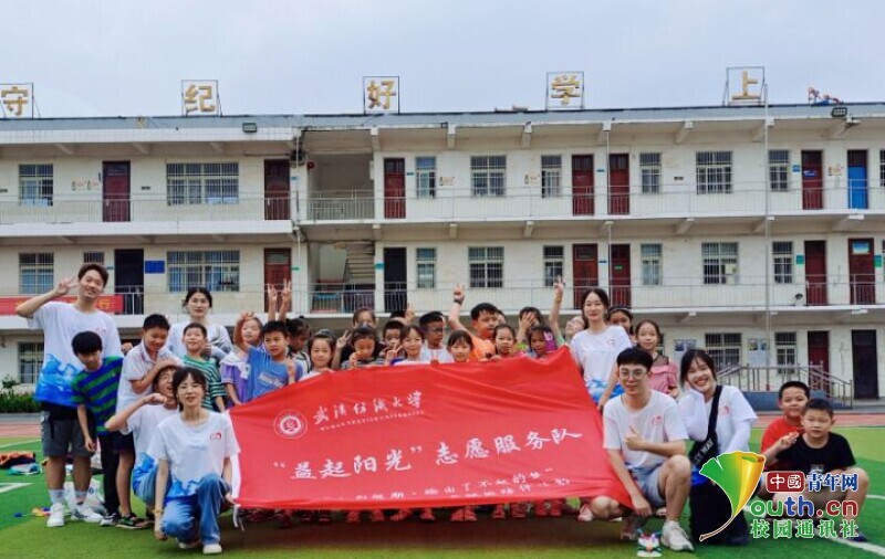 图为志愿者与小朋友们的合照。中国青年网通讯员 张丹 供图