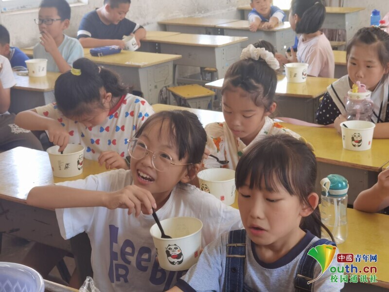 都说来到一个地方,就要走进当地。孝感米酒,香飘满天而饮誉盛名,我们也特意设计了《米酒飘香·探索原乡文化》课程,由我和另一位志愿者共同负责此课程,看着孩子们一脸认真地听我们讲理论,兴致勃勃地一起看操作示范,最后一起吃得不亦乐乎。望见孩子们脸上挂着的大大笑容,我们的心就像吃了蜜一样的甜,还有小朋友说“我要留点带回去给妈妈尝尝”。在米酒课程上,我们还迎来了一位小小朋友,因为年龄过小,我们全程留心照顾,她最后在品米酒时吃得可谓是碗光可鉴人。这位小小朋友可可爱爱的模样也留在了我们的相机中,刻在了我们的心头,这可爱的人类幼崽也成功俘获了我们许多线上小伙伴的心,十分憧憬来到现场。而据毛陈镇第一小学的老师们讲述,毛陈镇,古称毛陈渡,以前有毛陈两姓船家在这块设船摆渡,由此得名,据说孝子董永也曾在这居住过。“山际见来烟,竹中窥落日”,走在小镇的街道上,感受历史的车轮辘辘地碾过岁月长河。对于孝感市,对于毛陈镇,我们也有了别样的认识。