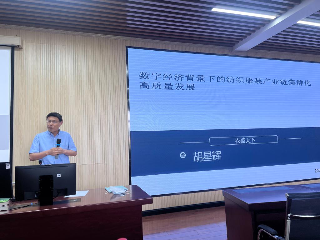 胡星辉教授做了题为《数字经济背景下的纺织服装产业链集群化高质量发展》的讲座,从纺织服装产业数智化转型现状、湖北省纺织服装产业“十四五”发展定位、湖北省纺织服装产业数智化发展路径三方面递进展开。纺织行业是国民经济与社会发展的支柱产业、解决民生与美化生活的基础产业、国际合作与融合发展的优势产业。目前,数字化技术已嵌入纺织服装智能管理全过程,形成产业链与智能制造平台系统发展的智慧管理体系,并带动纺织服装产业评价指标的数字化转型。湖北省将在“十四五”期间构建“51020”现代产业体系,现代纺织位列省府规划的十个5000亿优势行业之一。因而,全行业应增强机遇意识和风险意识,通过构建数字经济下的纺织服装供应链与产业集群,推动纺织服装产业向着集群化、高端化、数字化、融合化、绿色化目标高质量发展。