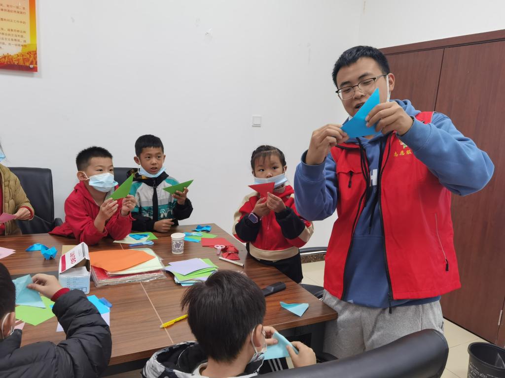 “老师,我想做一架小飞机送给妈妈,你可以教教我吗?”课堂之外,小朋友们也会发挥想象力,主动向志愿者请教,制作出各种各样的小摆件。用筷子搭建城堡,将一次性纸杯剪成小夜灯,用废旧矿泉水瓶做飞机模型,把彩纸折成降落伞……经过小朋友们的奇思妙想,一个个栩栩如生的小玩意儿被创造出来,“以前是看着课本一点一点做,自从哥哥姐姐们来了,我可以把自己想象中的东西做出来了!”