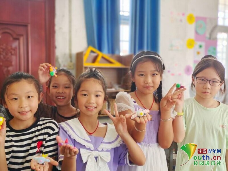 图为小朋友们展示制作的彩泥航模。中国青年网通讯员 张丹 供图