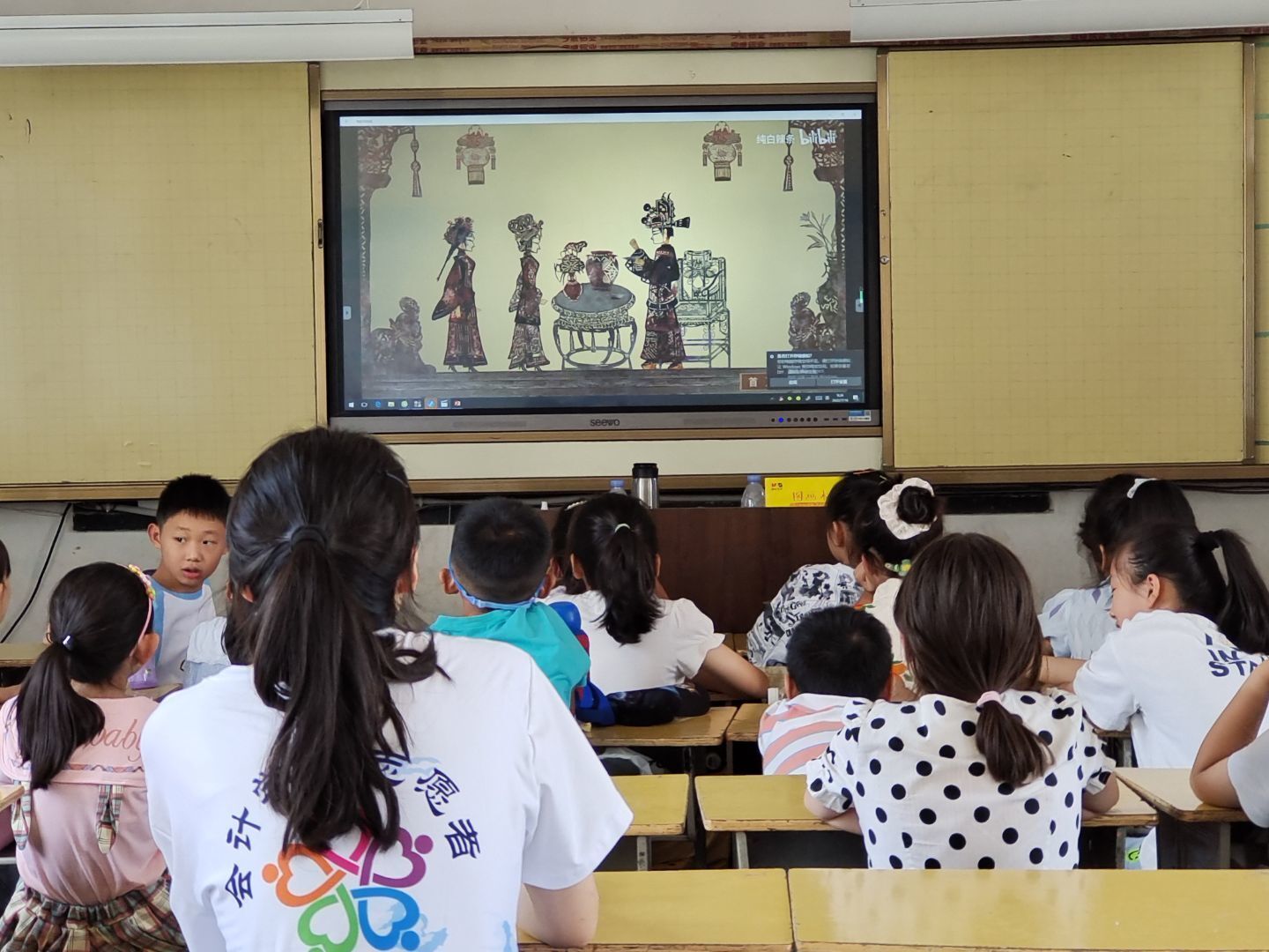 图为志愿者与小朋友们一起观赏皮影戏,更加生动直观地去了解皮影戏。中国青年网通讯员 张丹 摄