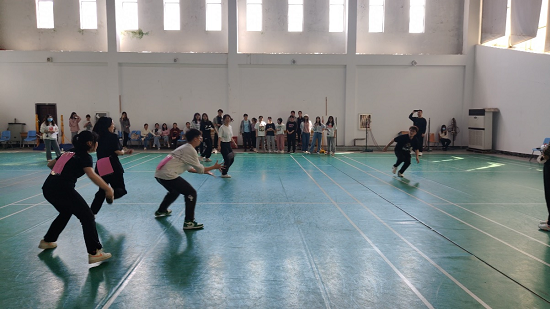 本次活动为团体活动,六人一组,由参赛成员男女自由组队。活动设置了两人三足、扔沙包、跳长绳、呼啦圈传递、羽毛球赛等项目。