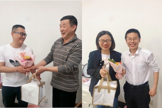 为增强职工的凝聚力和归属感,营造温暖和谐,积极向上的工作氛围,我校工会开展“生日送祝福,情意暖人心”职工慰问活动。2022年5月4日下午,学院工会主席汪俊代表学校为教职工送来了诚挚的问候,学院党委书记杜国良和院长赵立彬亲至教师办公室,为迎来生日的杨孙蕾老师和杨金键老师送上精心准备的蛋糕、鲜花和慰问祝福。