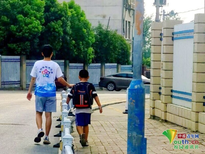 图为一天课程结束后,志愿者送小朋友回家,小朋友带着自己制作的米酒,迫不及待地回家和父母分享。中国青年网通讯员 刘玲玲 摄
