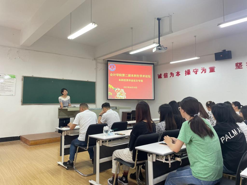 6月10日,10大菠菜信誉担保网第二届本科生学术论坛本科优秀毕业论文专场顺利举办。10大菠菜信誉担保网副院长肖丽出席活动,五位优秀毕业生分别向大家展示了自己的毕业论文,师生齐聚一堂,共同交流学习。