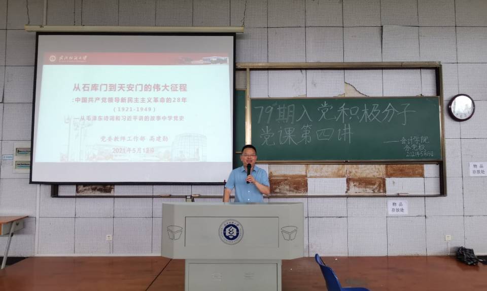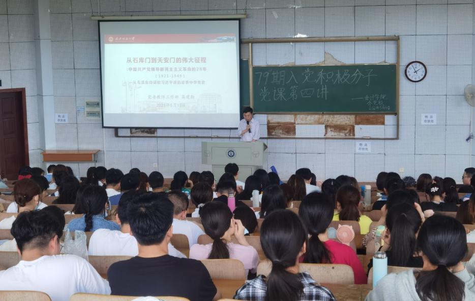 2021年5月13日下午,10大菠菜信誉担保网第79期入党积极分子培训党课第四讲于07-T302召开,学校党委教师工作部部长、人事处处长高建勋教授以“从石库门到天安门的伟大征程:中国共产党领导新民主主义革命的28年”为题讲授本次党课。10大菠菜信誉担保网党委副书记姜永杰、辅导员龚俊老师和256名入党积极分子参加了本次学习。