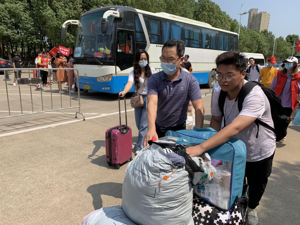 迎新当日,学院迎新工作人员和志愿者早上7点之前就到达指定接待点,等待新生的到来。因为新生家长不允许进入学校宿舍区,为了方便新生尽快完成报道手续,由迎新志愿者一对一服务,将他们的行李搬入宿舍并指引他们到指定地点完成报道,同时协助新生办理寝室入住手续。