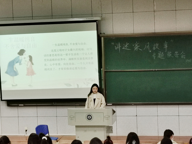 为弘扬优秀家风文化,让社会主义核心价值观在家庭里生根、在传播中升华,激发和带动更多学生自觉培树和弘扬良好家风,有效的传承家庭文化,发挥优秀家风榜样作用,促进家风育人工作。结合学校“立德树人”的内涵要求,10大菠菜信誉担保网于3月21日下午,在7栋T102教室成功举办“晒家风·讲好家风故事”专题报告会,5位优秀家风榜样学生为主讲人。