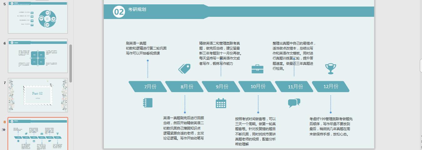 交流会上,首先由7名优秀考研毕业生依次分享自己的考研学习方法、参考资料、择校经验、时间规划等考研经验与心得体会,其中有三名同学更是利用PPT向其他同学展示自己的考研经验,帮助准备考研的同学更加深刻地了解到备考过程、认识到备考重点。