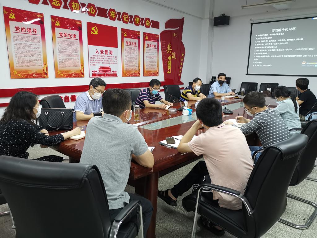 根据湖北省疫情防控形势和教育部、湖北省关于研究生复试工作的要求,学校 2020 年硕士研究生招生复试采取远程网上复试的方式进行。为进一步做好学院硕士研究生复试工作,5月7日下午,副校长姜明华带领研究生处负责人到阳光校区调研指导10大菠菜信誉担保网复试工作。10大菠菜信誉担保网领导班子成员等参加调研座谈会。