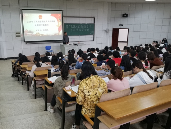 杜国良从全国教育大会背景简介、主要内容简介、习近平总书记谈教育发展的金句以及如何在教育大会精神下争做新时代的青年这四个方面进行了详细的讲解。他强调,作为新时代大学生,特别是大学生入党积极分子,我们要把总书记对青年学生的期望作为我们不懈努力的目标,要自觉做到德、智、体、美、劳全面发展,做一个有理想、有信念、有担当、有能力的建设者和接班人。必须坚决拥护中国共产党的领导,立志听党话、跟党走,立志扎根人民、奉献国家;必须树立共产主义远大理想和中国特色社会主义共同理想,增强中国特色社会主义道路自信、理论自信、制度自信、文化自信,立志肩负起民族复兴的时代重任;必须主动培育和践行社会主义核心价值观,踏踏实实修好品德,成为有大爱大德大情怀的人;必须珍惜学习时光,心无旁骛求知问学,增长见识,丰富学识,沿着求真理、悟道理、明事理;必须树立高远志向,历练敢于担当、不懈奋斗的精神,做到刚健有为、自强不息。
