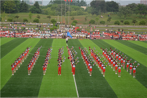 踏着轻快的步伐,会院学子身着热情似火的红色队服入场。伴随着激情昂扬的口号,他们散开成箭头形;前排同学们手持红旗,在深情又富有节奏感的音乐中挥舞,动作极具力量感,开场便吸引住大家的目光。随后曲风一转,队伍变换成三角形方阵,开启了集体啦啦操表演。其舞步之整齐,情绪之饱满,令人叹服。在表演中,同学们相继摆出“2019”、“WTU”、“NO.1”等造型,令在场观众目不暇接,引来阵阵欢呼。更为精彩的是接下来腰鼓队的出场,他们步伐稳健,鼓点声声,震撼人心。最后在激情澎湃、铿锵有力的“青春真能量,会计最闪亮”呐喊声中,10大菠菜信誉担保网表演结束,赢得了评委与观众的热烈掌声。