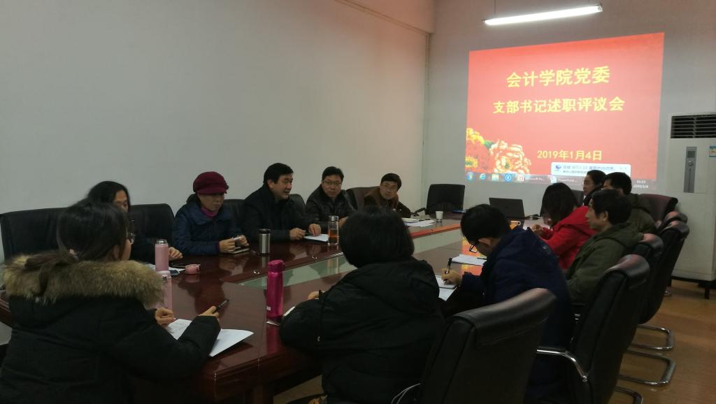 会计系教工党支部、财务管理系教工党支部、工程造价系教工党支部、行政教工系党支部、研究生党支部和会计专业学生党支部6个支部书记从贯彻学校学院党委决策部署、2018年党建工作责任清单完成情况、党建主体责任落实情况和党建工作成效及特色亮点等方面,逐一向与会人员进行现场述职,全面总结党支部一年来的工作情况,分析当前支部建设存在的问题,并提出下一步的工作思路和改进举措。其他党支部采用书面报告的形式进行了述职。参会人员采取不记名投票方式推荐2名优秀支部书记。