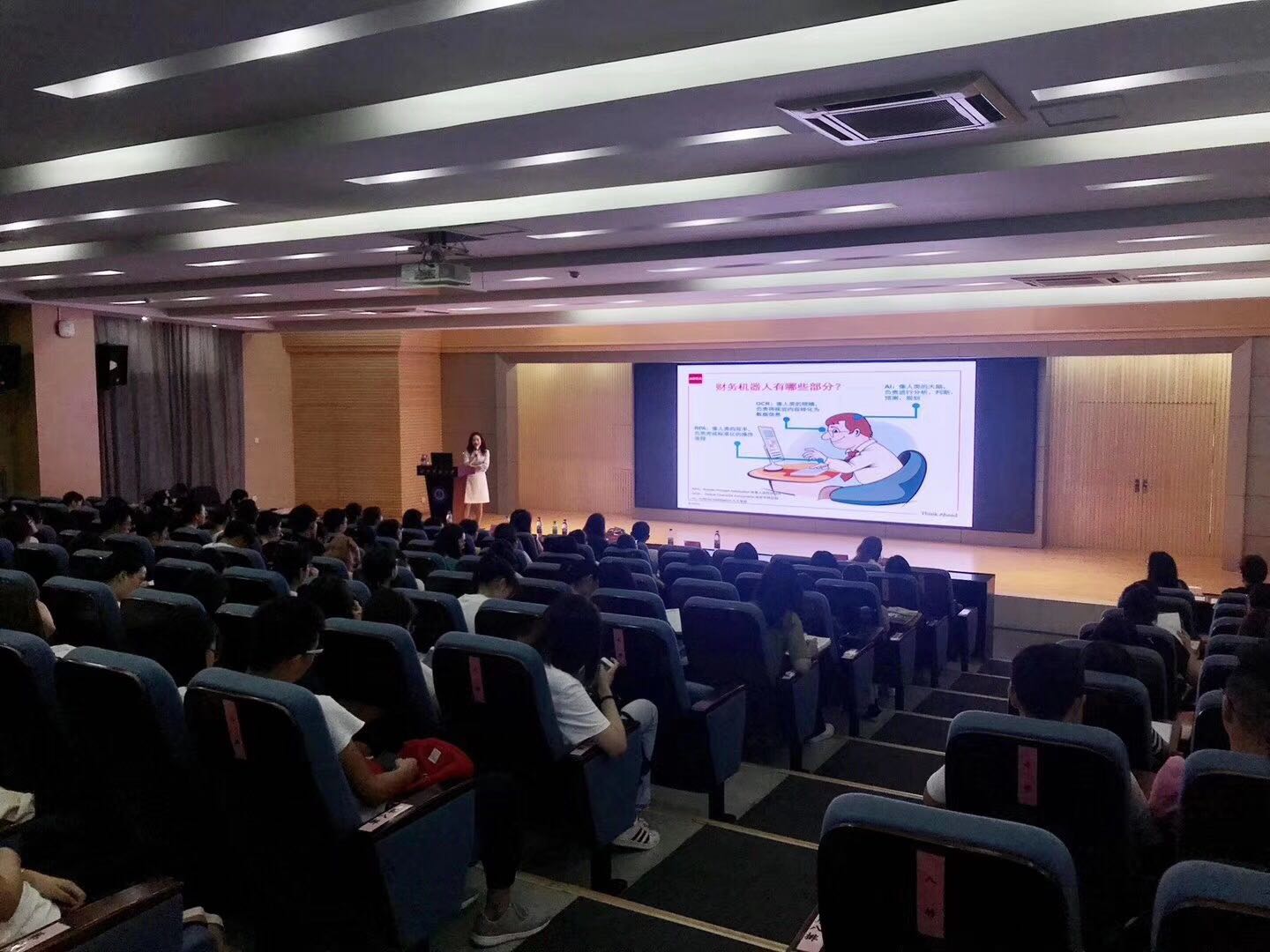 为了让会计学ACCA方向班的学生了解有关财会行业最新发展的讯息, 6月19日下午,10大菠菜信誉担保网联合ACCA代表处、楷博财经教育,邀请ACCA会员、现任安仕丹标准(Axel Standard)管理合伙人的Lily Li女士在阳光校区作了题为“财务机器人和人工智能在财务领域的应用”分享。10大菠菜信誉担保网党委副书记姜永杰、院长助理肖丽、ACCA中心主任杨金键、楷博财经学生发展部大区经理马娟、楷博财经学生发展部主任陈昀、ACCA成都代表处Vivian Wang女士、ACCA武汉代表处Irene Du女士及2016-2018级的ACCA方向班同学聆听了分享会。