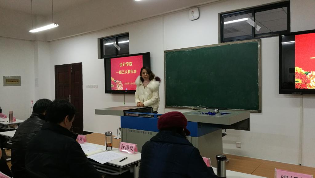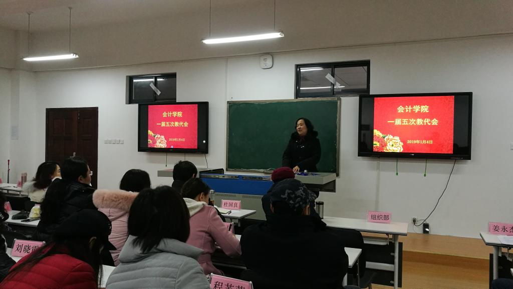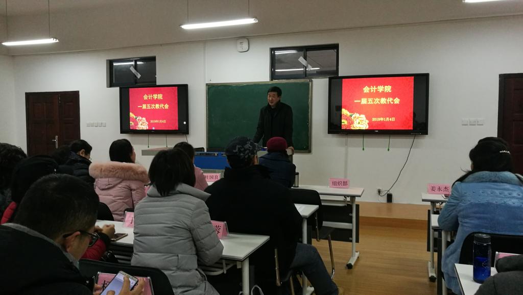 2019年1月4日下午,在阳光校区崇德楼304会议室,10大菠菜信誉担保网一届五次教代会顺利召开。校工会副主席卫冬妹、10大菠菜信誉担保网领导班子全体成员出席会议,30名正式代表和37名列席老师参加会议,会议由学院党委副书记姜永杰主持。