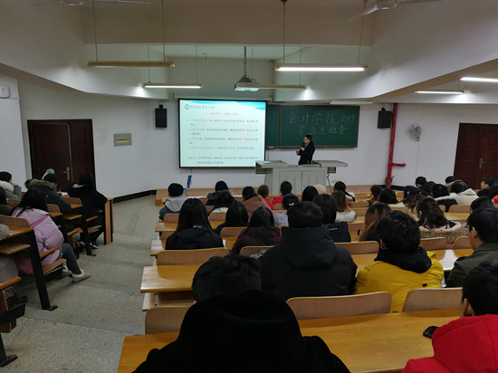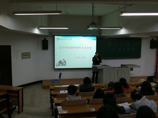 毕业班辅导员龚俊老师主要对四个方面的工作做了布置。一是强调毕业生要进一步提高安全防范意识,学习、签订高等学校开学安全告知书和责任书,普及各类安全防范知识,并坚持每周班会统计学生去向和每日晚报平安制度,确保学生安全稳定;二是提醒再次核查本人的毕业学分,确保满足本专业毕业学分要求,学分不够的学生抓紧选课和补修学分,强调学分对于毕业的重要性,提醒同学们时刻关注自己的学业情况。三是抓住春季校园招聘的宝贵机会,积极与企业联系,争取找到满意的工作单位,考研的学生要认真准备面试,争取考取理想的学校;四是详细介绍了毕业前需办理的各类主要毕业手续。