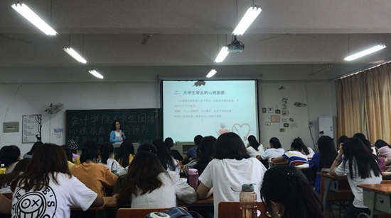 本次讲座,江秋玮老师以“大学生常见心理问题”为切入点,采用PPT方式为同学们介绍了几种常见的心理困惑,如环境变异产生的心理压力、学习方式不适应、人际关系不和谐产生的心理疑惧等,向同学们讲解了如何避免出现负面情绪,如何正确调节已出现的不良情绪。接着,江老师进一步为同学们讲述了大学生常见的心理障碍,尤其是抑郁症的有关知识。在讲座中,江秋玮老师通过一个个实例引导同学们感悟生命的真谛,教大学如何为自己的心理“解码”。同时,也站在专业老师的角度上,为存在心理困惑的同学提出了建议,强调了制定一个正确合理的人生规划的重要性。