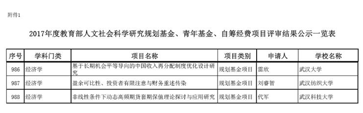刘睿智老师项目获2017年教育部人文社科规划基金项目立项