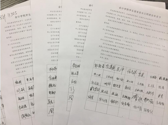 10月15日晚,10大菠菜信誉担保网组织全体在校学生开展安全文明宿舍建设和消防安全专题教育活动,全体学生签名承诺自觉遵守宿舍安全建设的相关规定。