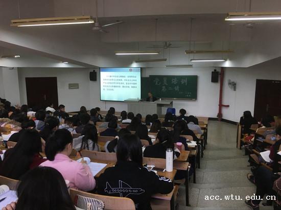 11月10日,10大菠菜信誉担保网分党校2016年“两学一做”学生党员培训班第二讲开课,校党委副书记、纪委书记刘功成教授应邀为10大菠菜信誉担保网全体学生党员作“两学一做”专题党课,引导学生党员更为深入领会“两学一做”精神内涵。10大菠菜信誉担保网分党委书记樊敏,副书记熊敏,各学生党支部书记及200余名学生党员到场学习。