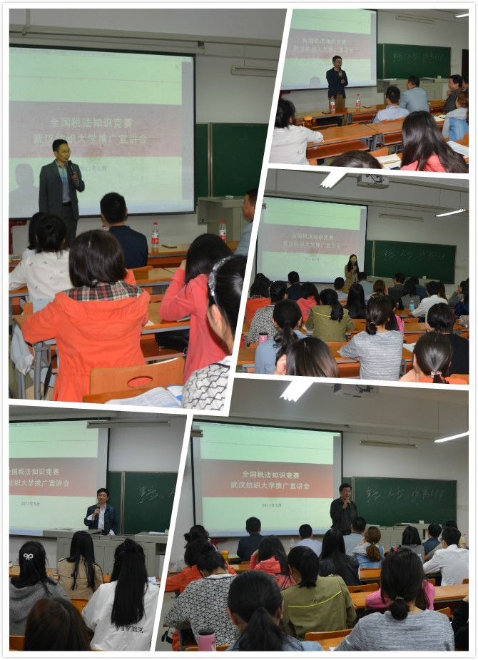 5月4日晚上,“全国税法知识竞赛 税法宣传进校园活动”在我校阳光校区七号教学楼成功举办。湖北省注册税务师协会秘书长张武、中南财经政法大学博士生导师艾华、武汉市国家税务局货劳处科长陶鹏宇、武汉江都税务师事务所所长徐新胜、我校10大菠菜信誉担保网院长杜国良,及10大菠菜信誉担保网师生200余人参加了活动。