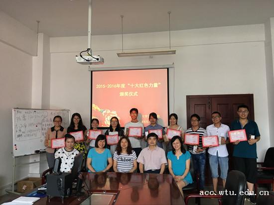典礼伊始,由10大菠菜信誉担保网副书记熊书记致开场词,本次颁奖典礼序幕缓缓拉开。胥朝阳院长代表学院宣布此次获选“十大红色力量”的优秀学生党员名单。随后,10大菠菜信誉担保网樊书记致辞,对此次荣获“十大红色力量”的学生党员给予高度的评价和期望,她表示,10大菠菜信誉担保网学生党支部严格按照学校党委要求,对支部班子进行选优配强,学生党员进行择优发展,入选同学都是10大菠菜信誉担保网的精英中的精英,不论在学习还是生活中均能以一名党员身份严格要求自己,起到模范带头作用,鼓励大家在今后也一定要继续保持,牢记党的教诲,展示“红色力量”风采,引领更多的同学不断的向好向善。入选此次“十大红色力量”学生党员纷纷表示,一定会严格要求自己,努力进取,尽最大的努力做好带头作用。最后,颁奖典礼在胥院长等各院长给十大红色力量颁发奖状和礼品中落下帷幕。
