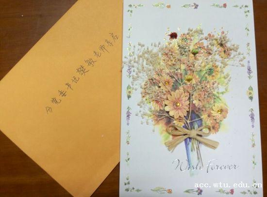 据悉,本次赠送活动由班长兼组织委员徐超群策划组织并拟稿,副班长王秋菊广泛宣传动员,学习委员谢晶与生活委员董亚兰、文艺委员云晓丽三位同学精心挑选感恩卡,李彦君、王子良、刘文泉、刘峘四位同学代为书写毕业感恩辞。感恩辞简短凝练,以“敬爱的老师,您好!”开篇,首句回顾各位老师在大学四年为卓越班倾注的关爱与辛劳,集中描绘各位老师给卓越班同学留下的深刻印象;次句表达对与老师一同度过大学最美好时光的眷念,以及在老师引导下对未来职业生涯的无限想往;最后所有同学送上了对老师们深深的祝福,并以“卓越CPA11204班爱您的孩子们,2016年5月20日”收尾。词句虽短,但厚重的感激之情尽在无言的留白之中;卡片虽薄,但师生情谊的佳话会怀念并承载于上!
