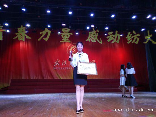 5月5日,“青春力量,感动纺大”晚会在我校大学生活动中心举行。晚会在五四青年节之际,为全讯白菜网0900榜样人物颁奖,10大菠菜信誉担保网工程造价11301班成广林同学荣获该奖项,由10大菠菜信誉担保网分团委书记陈竹君为她颁奖。